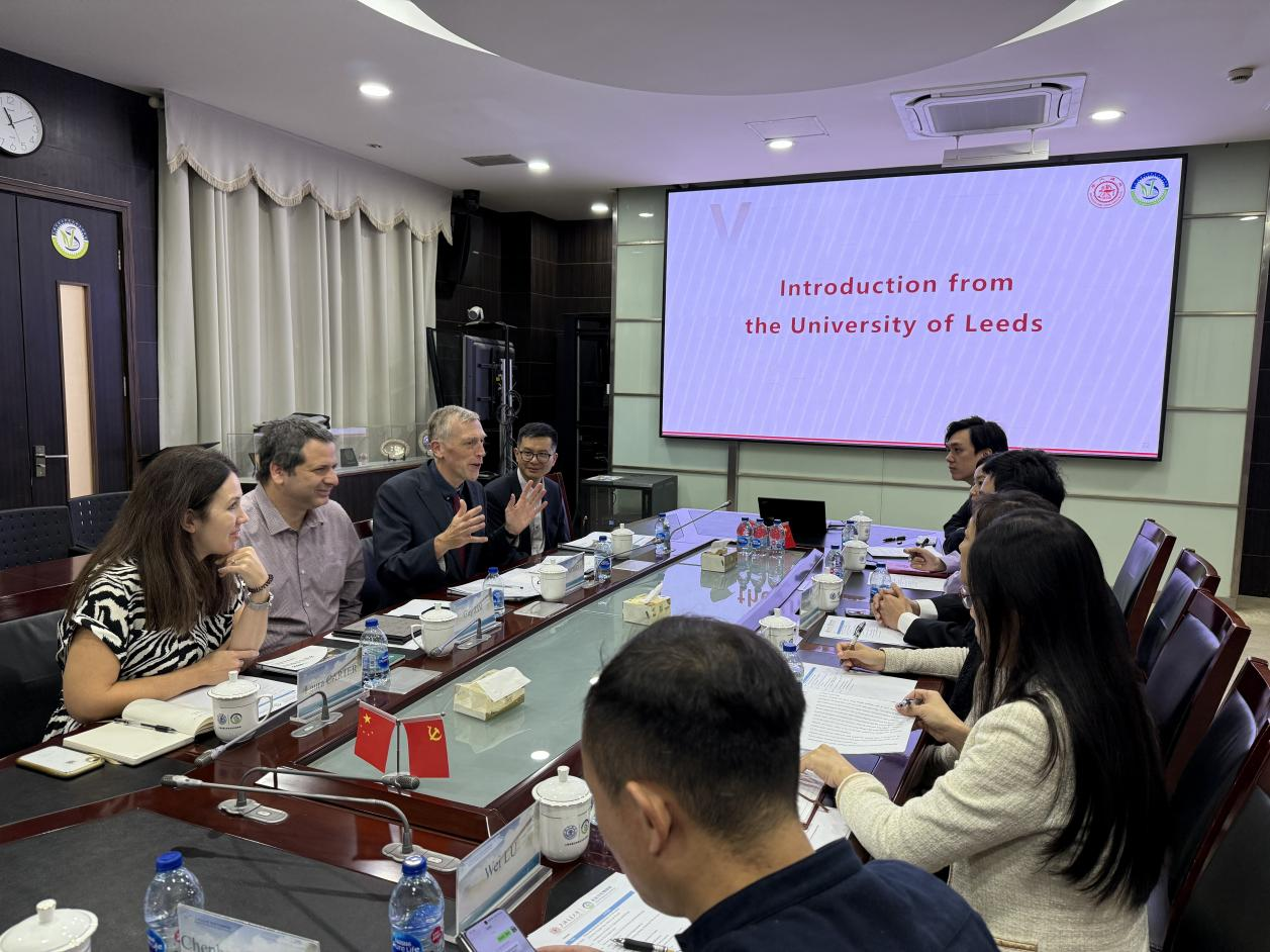 2024年11月7日上午,英国利兹大学生物科学学院协理副院长Ian Wood,环境学院协理副院长Guy Ziv,环境化学教授Laura Carter,国际科研与创新发展主任(亚洲)Hongsen Peng一行访问了果冻传媒 ,果冻传媒 果冻传媒 及生命科学技术学院参与了此次交流。果冻传媒 院长助理高泓博,资源与环境系长聘教轨副教授陈钦程、副教授赵琦、博士后周睿人,食品科学与工程系副教授鲁伟,合作交流办公室王之皓、郝雨璇、白玲参会;生命科学与技术学院副院长李丹,研究员张晨虹,研究生教务夏娟,外事秘书李吴頔参会;转化医学院毕磊老师也参加了此次交流。会议由高泓博主持。