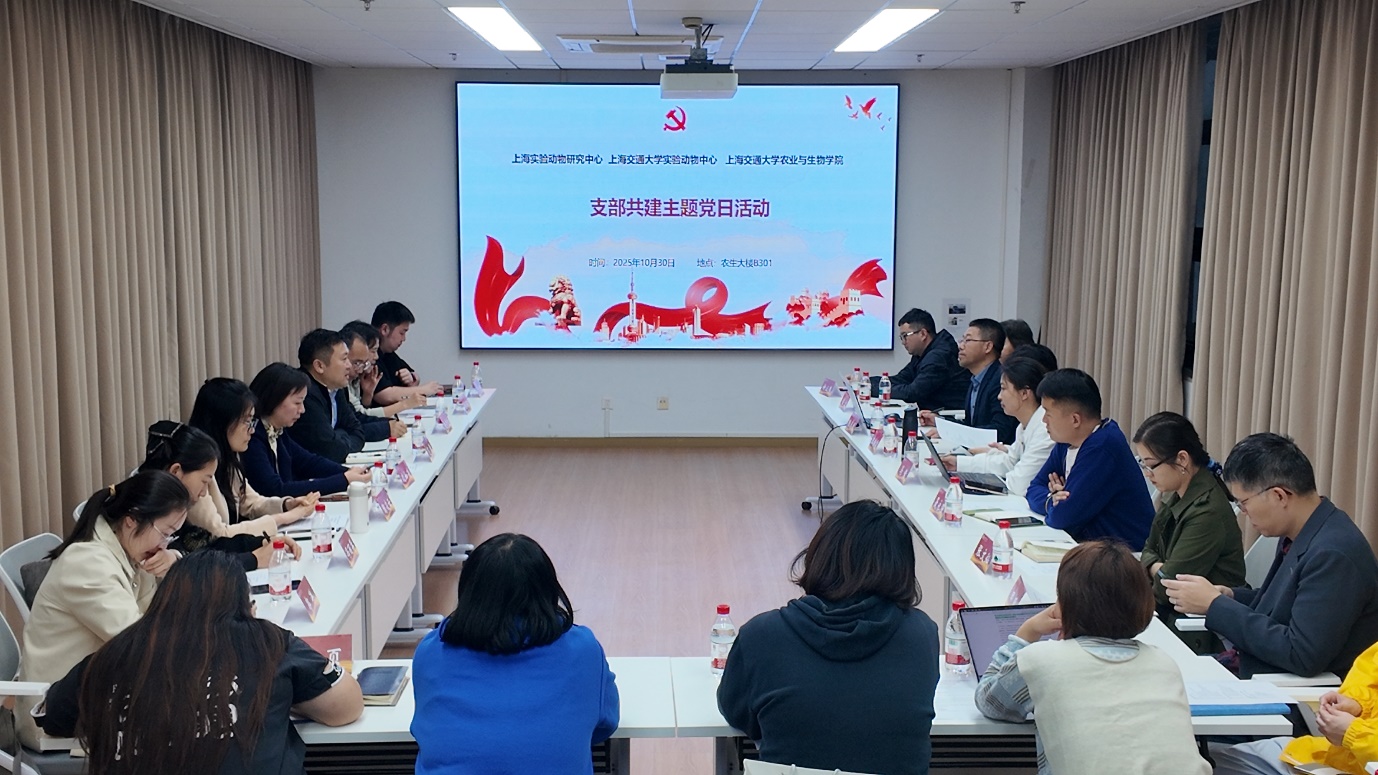 继今年5月动物科学系与上海实验动物研究中心第一、第二党支部开展共建活动之后,双方持续加强交流沟通。近日,动科系党支部与上海实验动物研究中心第一党支部、交大实验动物中心党支部联合开展支部共建。旨在以党建为引领,推动双方业务协同发展。上海实验动物研究中心主任、副书记范春,第一党支部书记沈如凌;交大实验动物中心主任、支部书记王朝霞;动物科学系党支部书记杨志彪,以及三方党员和相关教师共计30余人参加会议。会议由杨志彪主持。