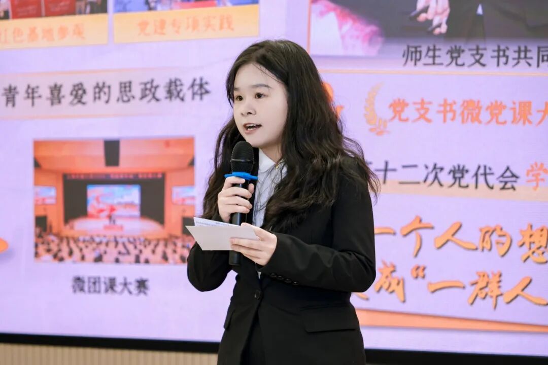 ● 青听心声:以初心锚定青年航向。从团支书到党支书,她立足青年需求,投身党团建设,带领支部成为全校首批生活包干区团支部,精心打磨微党课,为青年扣好“入党第一粒扣子”,获微党课大赛二等奖,被推选为第十二次党代会学生党代表