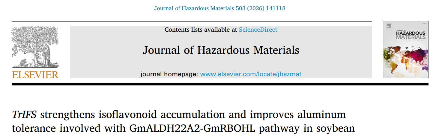 近日,果冻传媒 果冻传媒 王彪课题组在国际著名期刊 Journal of Hazardous Materials(IF=11.3)在线发表最新研究成果。研究发现大豆异黄酮作为一种天然的抗氧化剂,不仅能提高植株体内抗氧化酶的活性水平,而且能调控GmRBOHL酶活性的水平,减少活性氧的产生,从而提高了转白三叶草异黄酮合成酶基因(TrIFS)大豆的耐铝能力。